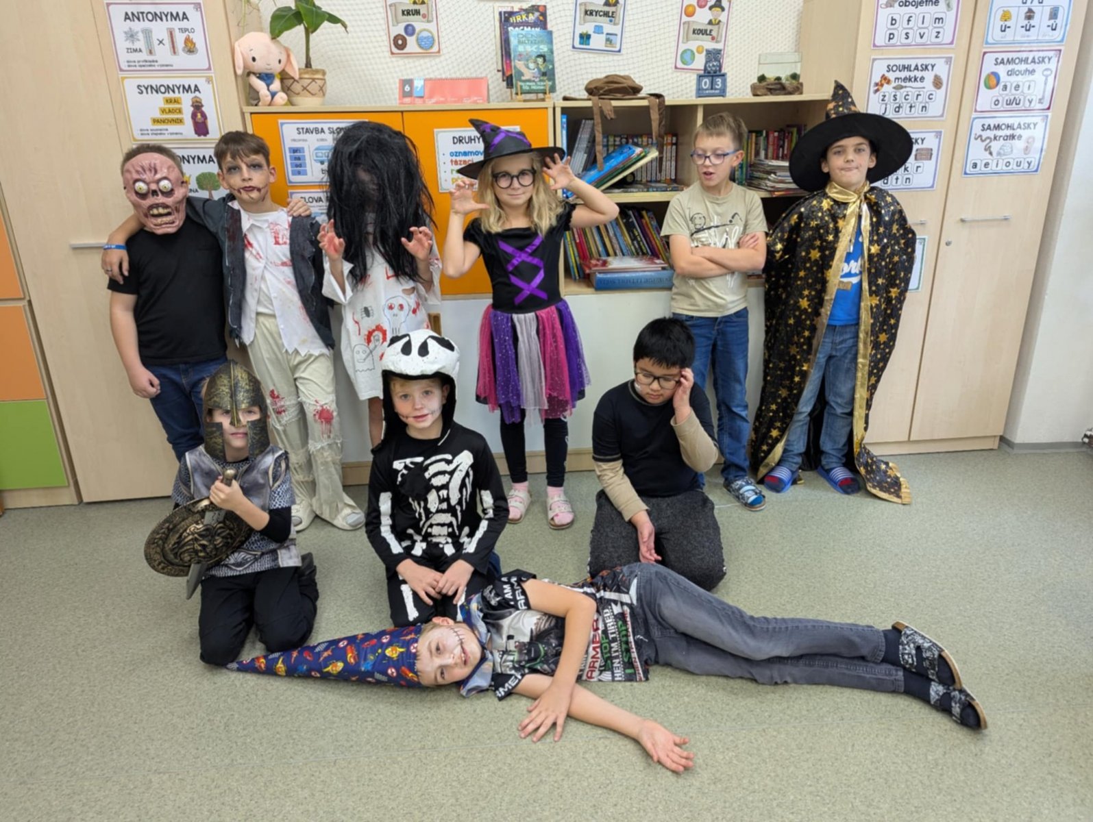 V pondělí 3. listopadu jsme ve škole slavili Halloween. Na děti čekalo spousta zábavných úkolů, písniček, vyrábění, stezka i společný průvod celou školou.