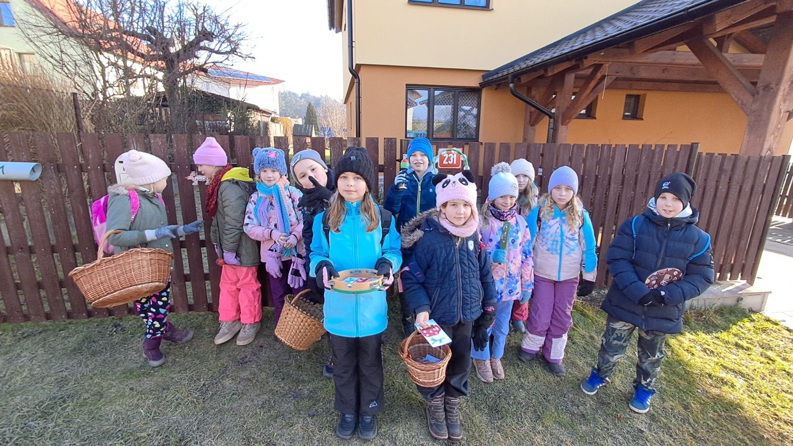 Ve čtvrtek 18. prosince se všechny třídy vydaly na tradiční koledování - každá obešla jednu část Dražic a popřála lidem krásné svátky a šťastný nový rok a předala ručně vyrobené vánoční přání a malý dáreček.